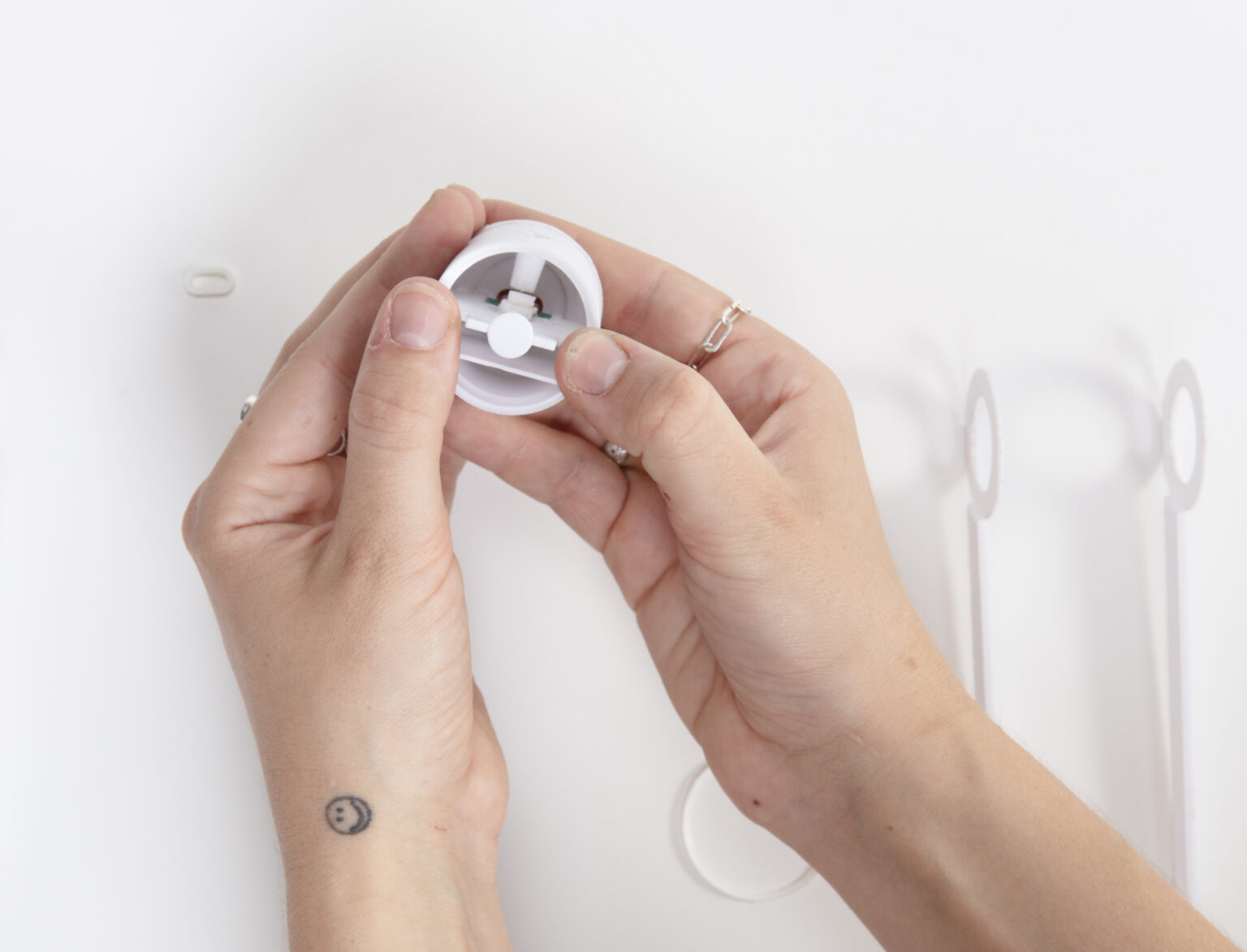 A USB-C port and a single physical switch, located on the flat ends of the cylinder, keep the interface simple and intuitive.