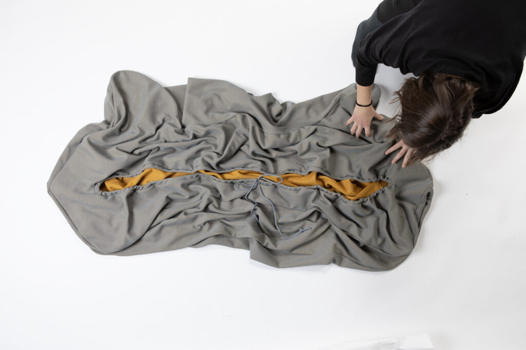 Comfort is created through the tensioning of fabric across a foldable steel frame no padding required. As the frame unfolds, it shapes the fabric into a saddle-like surface that invites the body to rest in a naturally supported posture. The result is a seating experience that feels soft and relaxed while remaining structurally minimal.
